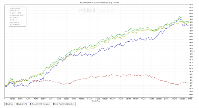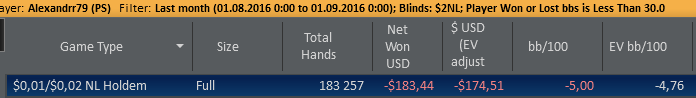 Alexandrr79,на лимитах выше,от нл50 можно вообще чисто по красной делать профит,меня когда то порвали на нл200 реги,мне это дорого обошлось,но я кое что понял:))) Очень дорого обошлось,завязкой с покером скорей всего,не полной конечно,все равно что то катать будешь если ввязался.