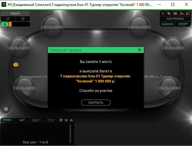 3. Выиграть 5 трофев ближайшей серии "Гладиаторские бои", на Покердоме, соответственно!🏆