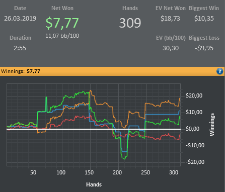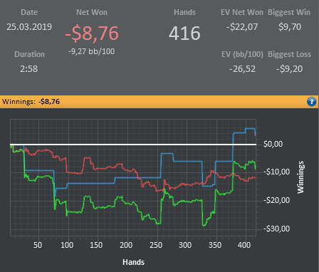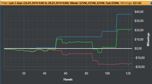 Pokerstars - 2-3 стола NL25 Ощущение, что одни реги за столами в будние дни, и все какие-то переагренные и телефонные, 3беты зашкаливают, колят до упора, кароче, ваще какая-то жопа, а не поле..