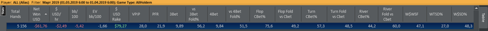 Радует хотя бы то, что я таки перешел на NL20-25 и ниже уже не катаю. + поработал над стратой - увеличил 3-беты и 4-беты, WWSF и в целом агрессию, выравниваю контбеты по улицам: