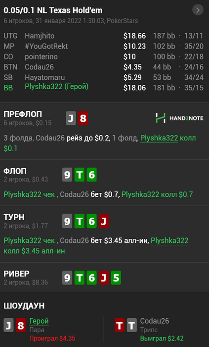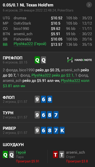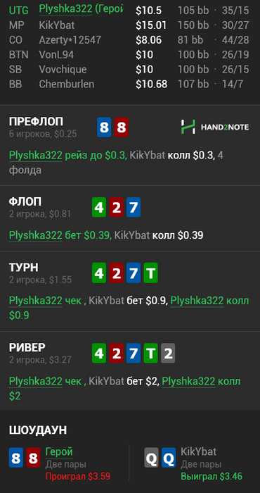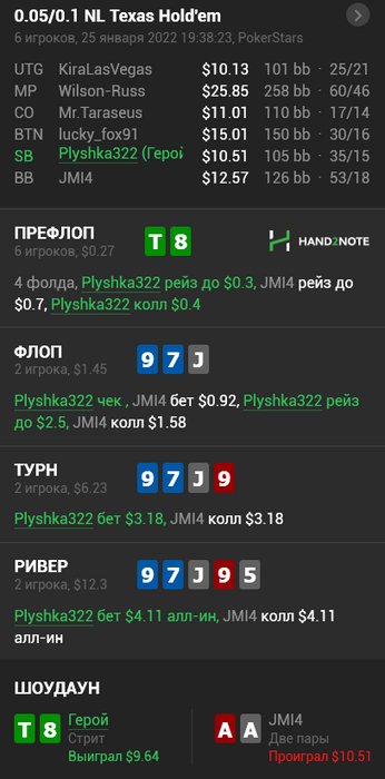Вот запоминающиеся раздачки из ночной сессии, там еще много мелких, которые надо бы посчитать, по шансам ли я колил и тд. Буду этим заниматься после сессии.