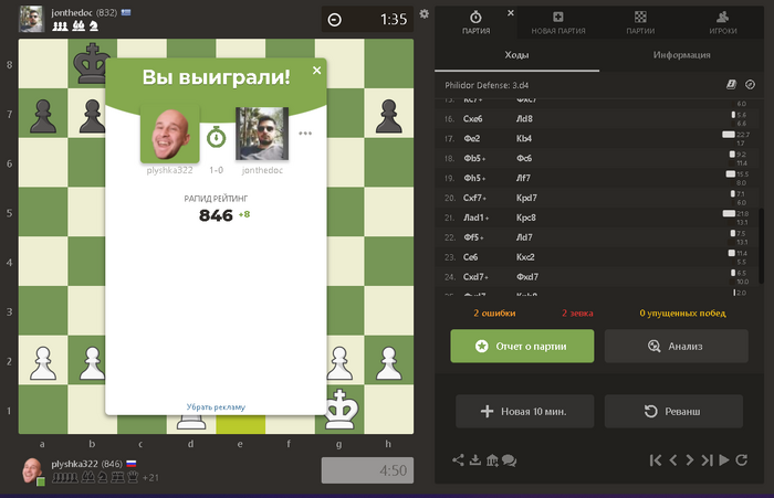 Как то так. Особо комментировать нечего. Игрой своей в целом доволен. Было конечно несколько грубых ошибок, то, что я их вижу - уже хорошо.