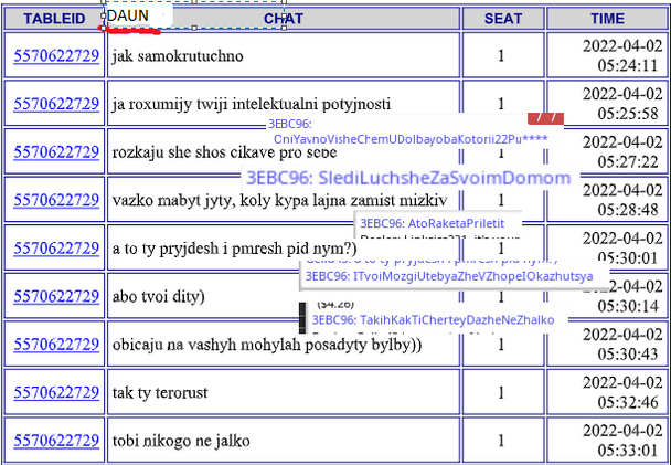 3EBC96 @ 02.04.22С его стороны последовали ответы подобного же плана. В духе что я придурок и у меня нет мозгов. На что я ответил, что у меня мозгов явно больше чем у типа который 22 пушит. Дальше конфликт начал раскручиваться. В порыве тильта и ненависти я ответил на всё это слишком жёстко. Там было что-то в формате "Смотри лучше за своим домом, чтоб ракета не прилетела, иначе уже твои мозги у тебя в жопе окажутся". Как в принципе понятно, рег был из Украины.