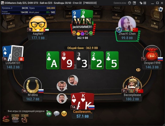 Меня очень много людей с момента начала плотной игры в покер спрашивают - зачем ты продаёшь такой объём долей? Ответ на этот вопрос очень простой - смотрим картинку ниже. Это следующая раздача после того, как я с одного китайца по ТПТК добрал с натсфлэшом на ривере - 3/4 его стэка в размере 95бб.