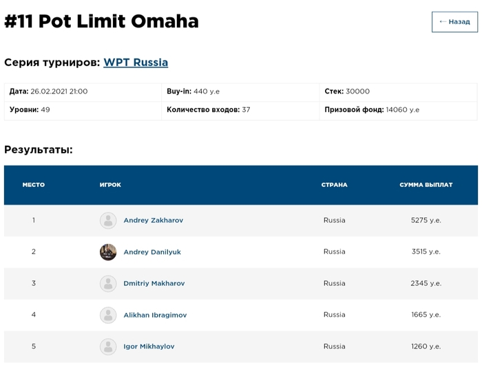 Бобрик - 505,000 (средний стек). Коптев - аут.