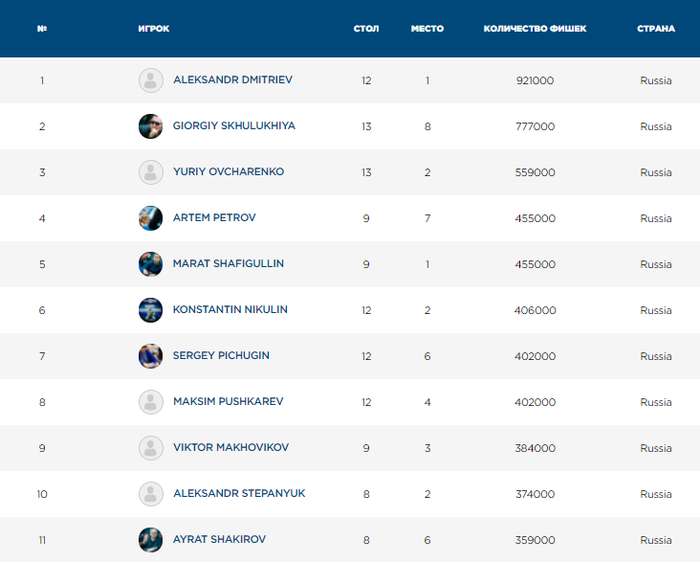 Доска - . Вячеслав вылетел, и у нас готов финальный стол.