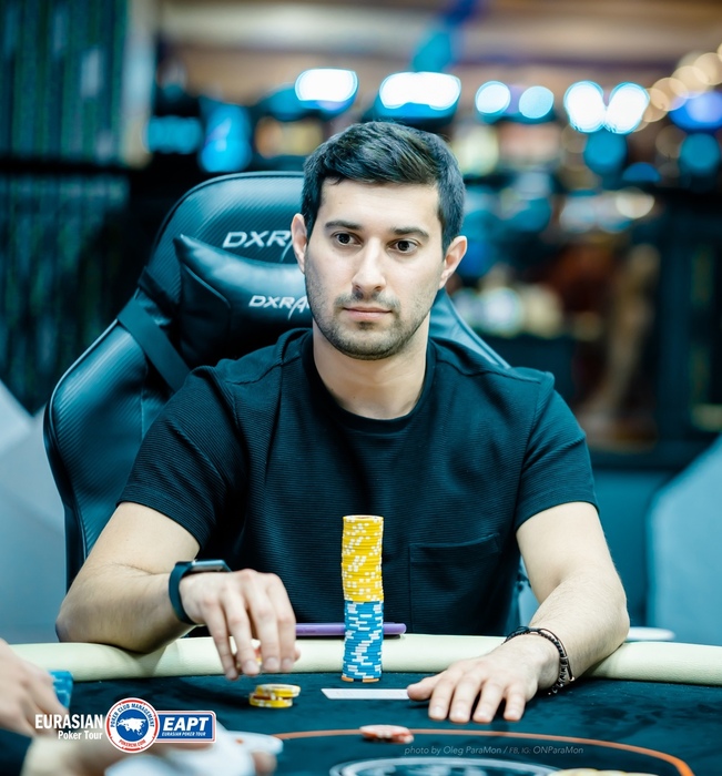 Мухтар Насирадинов (СО) открыл 23,000, Марк Узденов запушил в него с большого блайнда, колл.