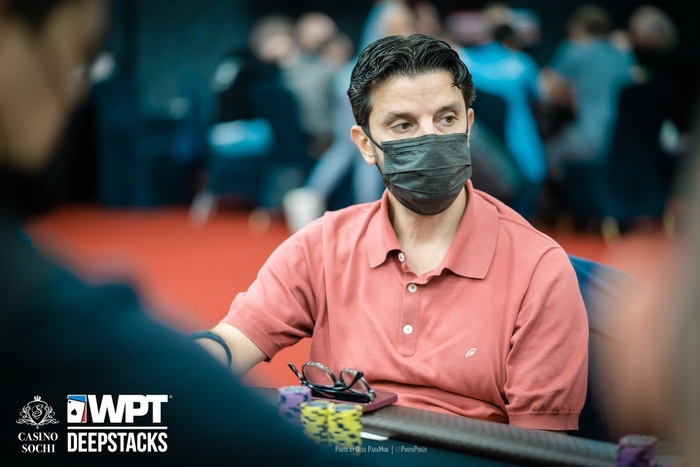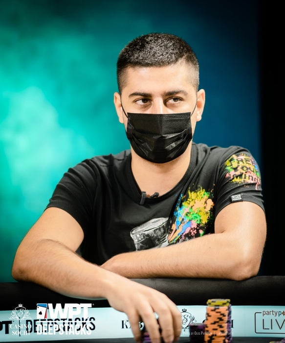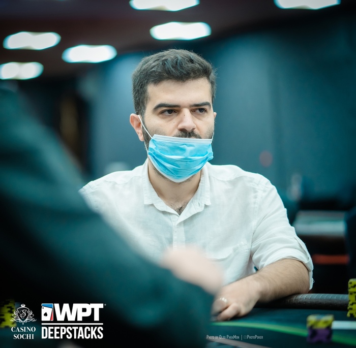 Юрий Саликаев сыграл сквизом 200,000 с большого блайнда, Корай Коркмаз (UTG+1) выкинул карты в пас, Панков заплатил на баттоне, но на флопе сдался на ещё одни 200,000.