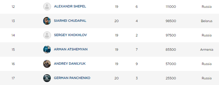 Чипкаунты сегодняшних флайтов Closer. Самым посещаемым оказался День 1В, собравший 94 входа. Дарья Крашенникова смогла набить 684,000 - и она чиплидер всего турнира. День 1С набрал 57 регистраций, вчерашний 1А - 41.