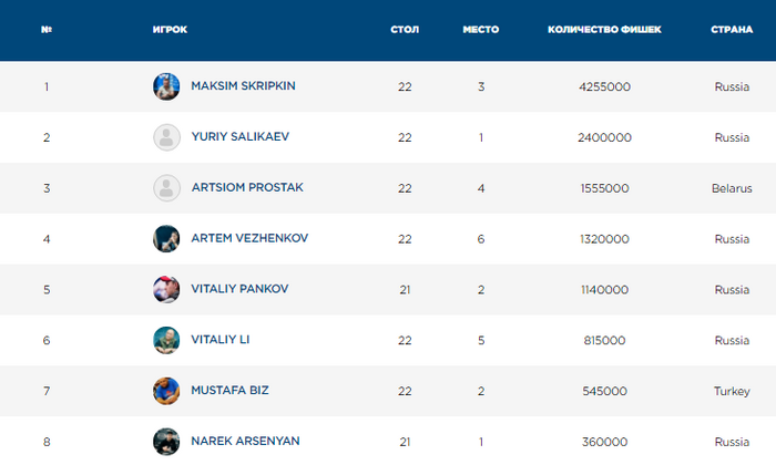 Липницкий занял 9-е место, а остальные игроки упаковали фишки в пакеты, и завтра они продолжат на том же месте в 12:00.