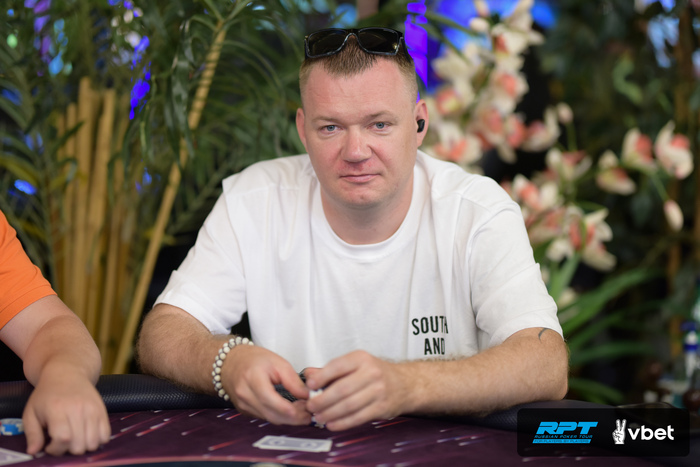 За соседним столом каким-то чудом по минимуму фишек проиграл Эдгар Бегларян. На доске колировал с фулл-хаусом на шестерках ставки на флопе, терне и ривере от Бабкена Бабаджаняна, тот показал каре на . Всего по 35,000 отделался.