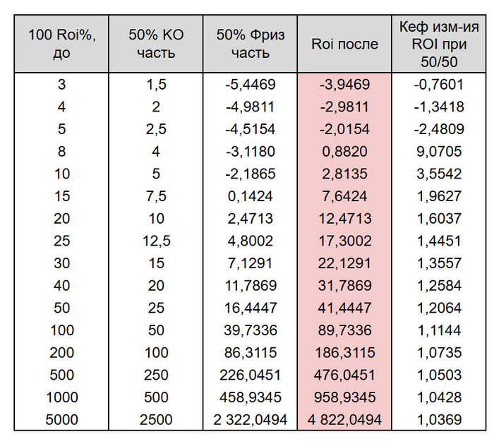 Так или иначе, за счет существования КО части прайзпула мы получим Кеф падения рой меньшего порядка. Вот гипотетический пример при соотношении КО и фриз частей 50/50: