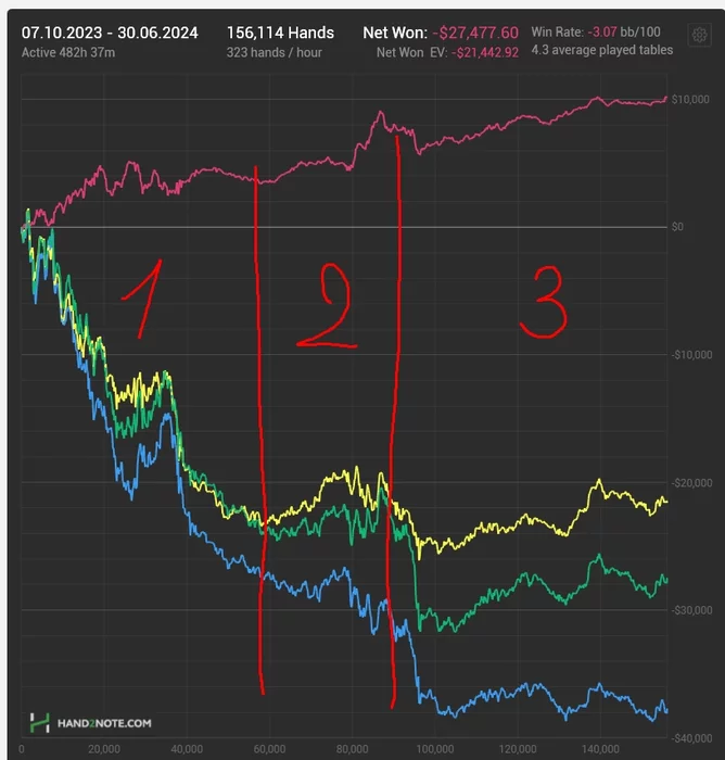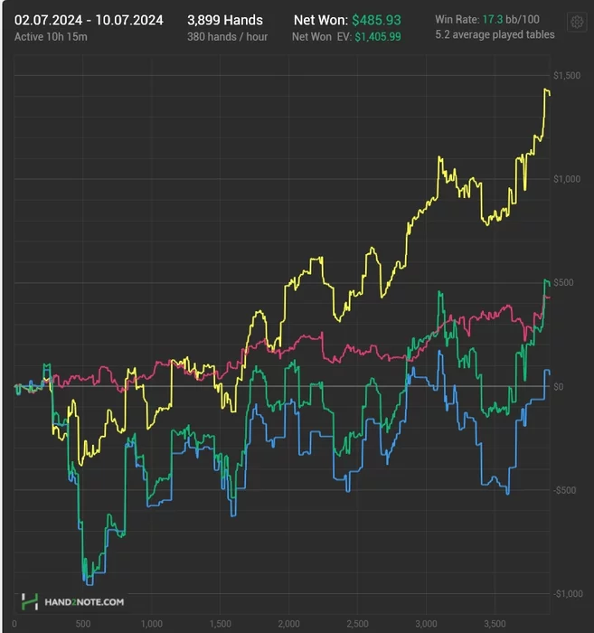 Что самое забавное я вот сижу сейчас и понимаю, что даунстрик то на самом деле прошел и почти всю 3 часть графика я играю 50-60к рук в +5евбб причем при ужасном АФК гейминге, полном тильта, по 1.5-2ч в день, без теории... Пора бы уже прекращать заниматься херней.