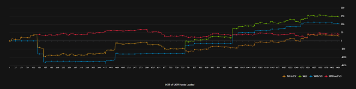Откатал 1.5к раздач за 2 часа на нл50. Профит игрой: +99,11$ и +17,5 за ЛБ.