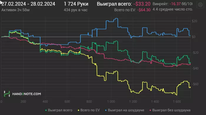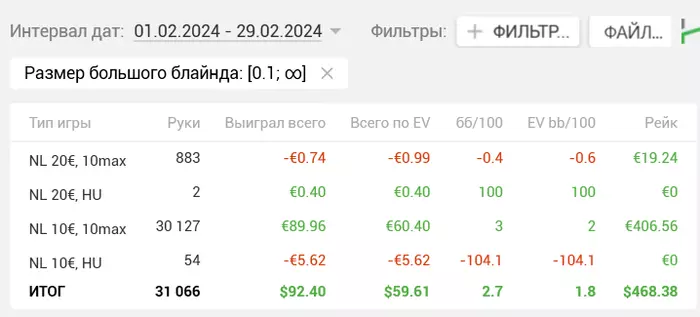 В феврале я отыграл 31066 рук, задача на март сыграть больше 31066 раздач по трекеру.
