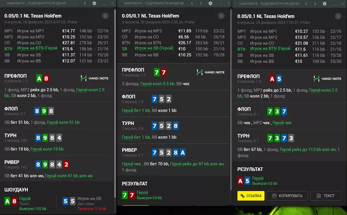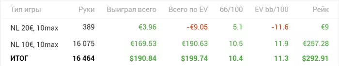3 МТТ сессии по 8-10 турниров со средним БИ около 7$. Ничего интересного, я в любом случае буду иногда отыгрывать подобные сессии по воскресеньям для разнообразия.