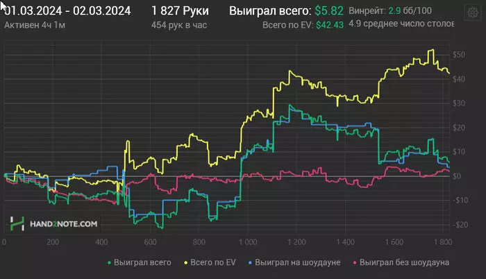 На верхнем лимите ( нл 20 ) я отыграл всего 883 руки, задача на март отыграть как минимум 5000 рук на нл20. В идеале перейти на него полностью и играть нл10 только как добивку, но торопится я не буду.