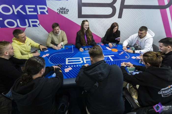 Одну небольшую раздачу сыграли Марио Баазиз (BU) с чиплидером Никитой Киселевым (BB). Была всего одна ставка на терне от Марио, флоп и ривер прочекали.