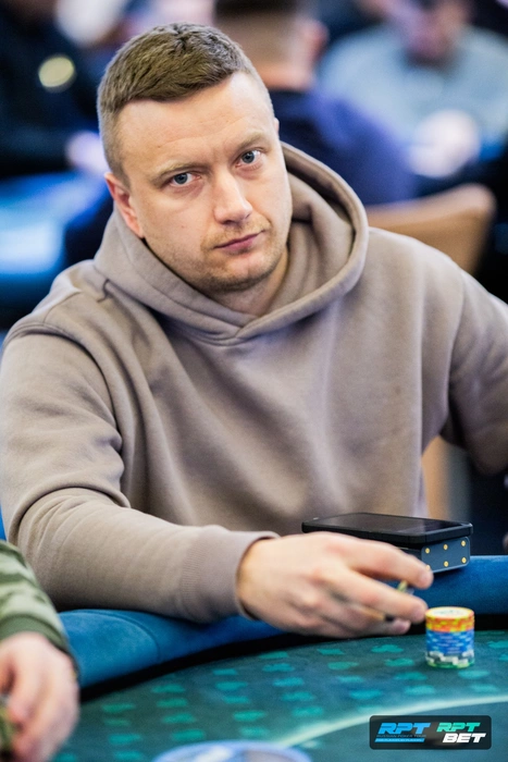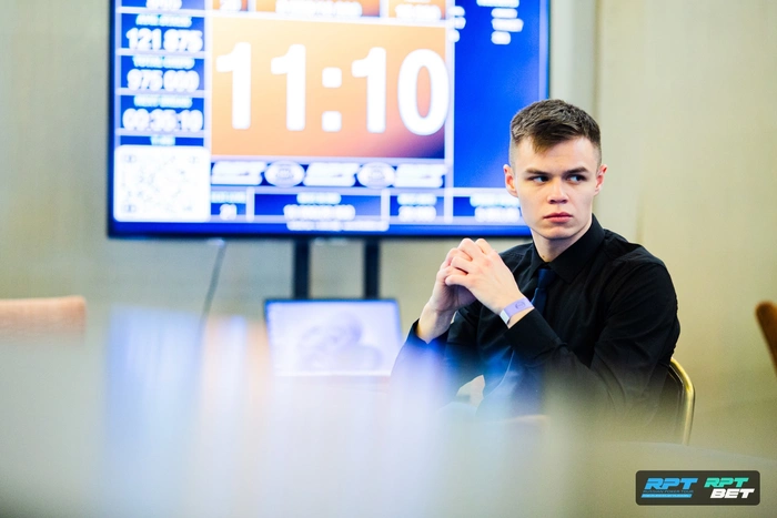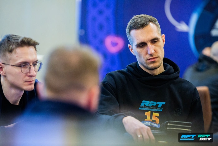 Меир Батырханов выбывает из турнира, Всеволод Панков утраивается до стартового стека, а Михаил Колесов остается все ещё в числе чиплидеров.