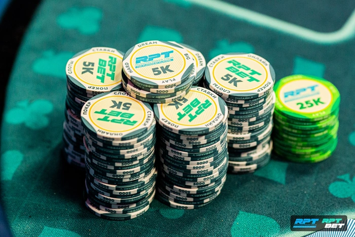 Блайнды 5к/10к, анте 10к, средний стек 283к, 13/123