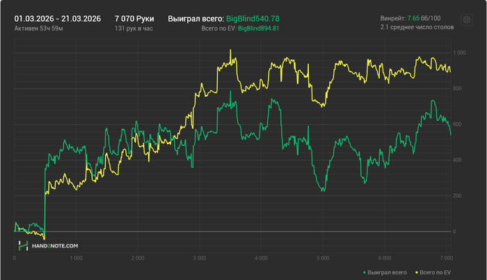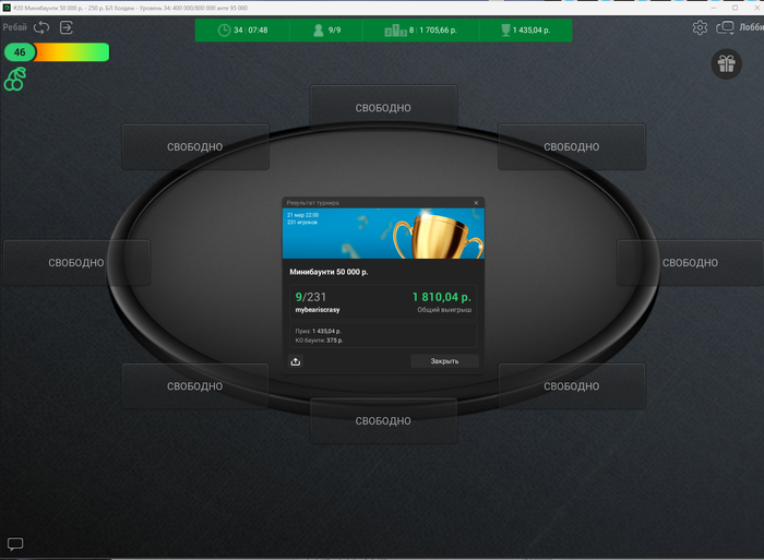 Хотел играть по 40 турниров в день, вчера получилось только 22.