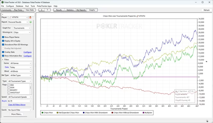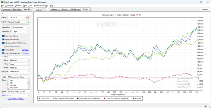 Мог бы отыграть в еще больший плюс, но подвели множители, сегодня с ними прям тяжко было. Помимо игры сегодня позанимался час теорией, в основном просто повторил префлоп в 3 максе, как оказалось у меня там был небольшой оверфолд на бб. Завтра надеюсь отыграю побольше, а то такими темпами не получится сыграть 10к за месяц.