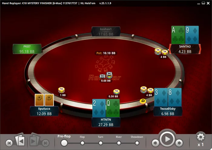 В мистери фазе (а она на редстаре наступает сразу после лейт реги) топ нок на 400 евро забрали в первой же раздаче, причем, это сделал чел за моим столом с 38s вот в таком споте: