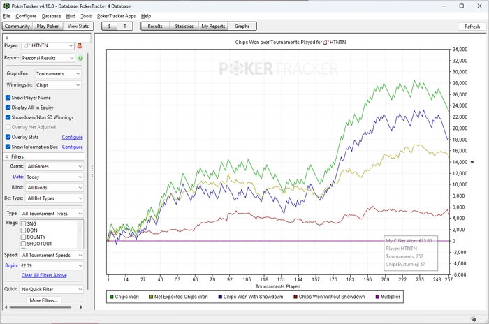 В спинах все получше. Вчера, хоть и в моменте много недобирал, в итоге все отбил и даже вышел в хороший плюс. По множителям сегодня было неплохо, правда, почему то, в ночной сессии вообще не было бустов. Вообще, в последнее время начал замечать, что ночью, после 2:00 по мск уже не такое приятное поле, часто попадаются столы вс 2 регов, как днем. Не знаю, с чем это связано, но сейчас катка ночью не такая приятная, как раньше. Общий график за день получился такой: