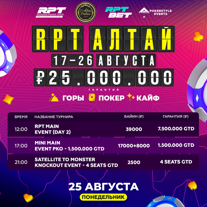 🔴В 12:00 встречаемся за столами катать RPT Main Event (Day 2). Завтра можно будет зайти 39,000 рублей еще 2 уровня по 40 минут. Последняя возможность ворваться в главный турнир серии.