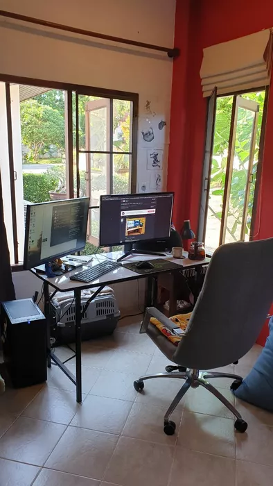 за последние 1,5 года переезжал 6 раз и пока постоянным сетапом не обзавелся, в планах нормальное кресло и стол, а пока купил бу за 60$