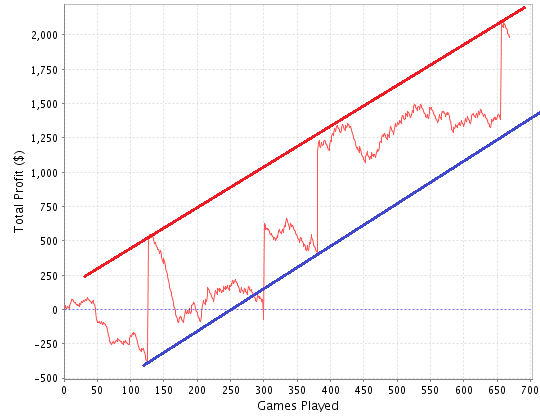 Всё то, что я щас напишу, прошу воспринимать чисто как имхо и не более, т.е. как инфу для размышления, а не средство к действию. Что было понятнее, то поясню: я считаю, что в покере возможно применить биржевой тех.анализ и с его помощью анализировать покерные графики и прогнозировать ситуацию на будущее. по моему мнению это должно работать. правда графики МТТшниов самые неподходящие, но и на них вполне можно проверять данную идею. я к сожалению дилетант в тех.анализе, по этому не судите строго.