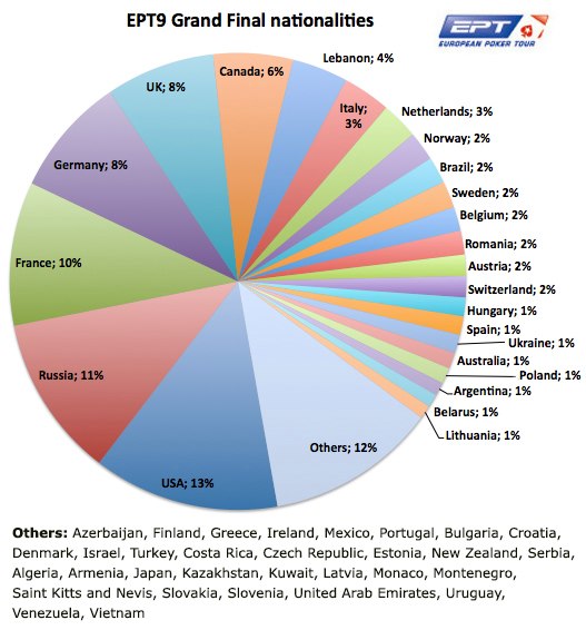 Общий российский десант на Гранд Финал составил 11 процентов от общего числа зарегистрированных в Main Event игроков, и это лучший результат среди представителей Старого Света, больше только американцев, причем всего на пару процентов.