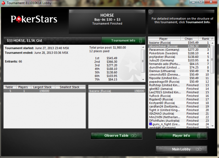 испытываю желание зарабатывать покером, думаю может получиться, план простой соблюдать БРМ (его рамки сформирую попозже) именно этого мне, как я думаю, не хватало. занес пару турниров и посчитал что великий, давай по 22, 55, 109 по 215 с банкроллом в 1К!)))