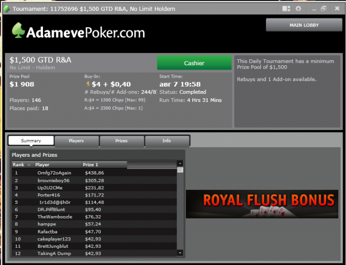 Administrator: $11 NLHE [$7.5K Gtd] - 12 minutes. Join now: T610010867, Tourney/All