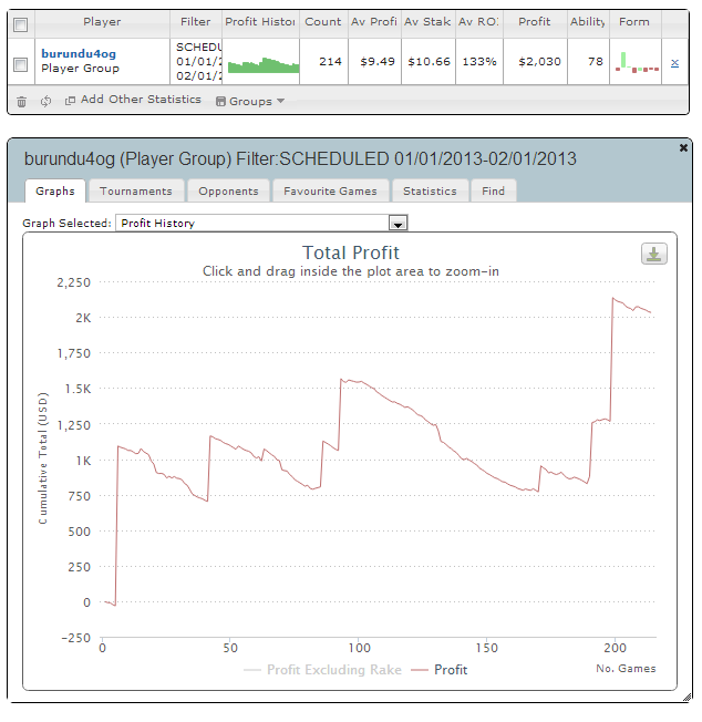 Январь 2013. Хорошее начало, плохая середина, средняя концовка. Примерно так можно охарактеризовать этот зимний месяц. Очень много засажено в минифтопсах (около 18 ивентов (а если где мультивходы ещё больше) 0 итм) Чуть лучше чувствую себя на 20ках. По прежнему плохо заходит в поздней стадии и изза этого много недоездов. Сыграно очень мало, так как много халтурил изза праздников и постоянно гдето кутил. Вывел часть бр, теперь играю от команды фритим.