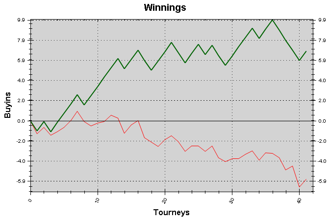 Поразбирал руки, с той сессии, вроде все не так плохо... Очевидных ошибок 3, в одной раздаче я просто не увидел что закрылось ФД с терна и инставколил 120бб на ривере, и 2 ничем не оправданных тильтоколла на 60-70бб. ну может еще парочка необязательных префлоп выставлений AQ на 100-120бб были слегка минусовыми. За полтора часа сессии конечно многовато, но на фоне общего итога -3,5к копейки
