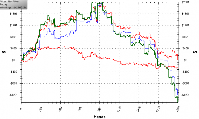 Но в любом случае я решил полностью поменять подход к игре, потому сейчас что мой уровень меня дико не устраивает. Я уже говорил, что игра давно скатилась к тыканью по кнопкам по устаревшим шаблонам. Буду играть 1-2 стола и бесконечно анализировать каждую ситуацию, + каждый день работать за пределами столов. Надеюсь, это поможет решить проблемы с концентрацией, потому что обычно у меня она и так низкая, а когда она падает то вся игра рушится как карточный домик. Я даже нарисовал блок схему, как это происходит)