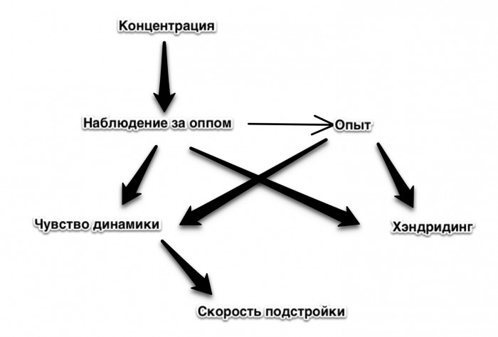 Вслед за концентрацией теряется наблюдательность, откуда вытекает потеря динамики матча, вследствие чего страдает хэндридинг и подстройка. Ну и полезный опыт в такой игре едва ли получишь.