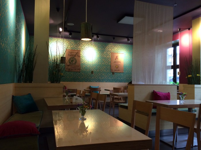 В поисках халявного wifi забрели в вегетарианское кафе.