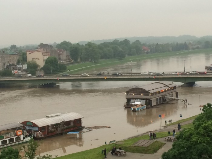 Оставили вещи и пошли гулять. Погода не радовала. Радовал отличный вид из ресторана на последнем этаже отеля Sheraton. Ну как, относительно радовал. В восточной Европе сейчас наводнения.
