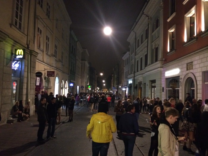 После "Pod Wawelem" мы пошли гулять по ночному Кракову. Была пятница и на улицах можно было видеть толпы гуляющей молодежи.