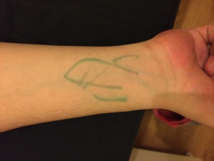 Одному из нас повезло меньше и под дружный хохот и крики охранников "Ракета, ракета!" на руке появилось вот такое)))))