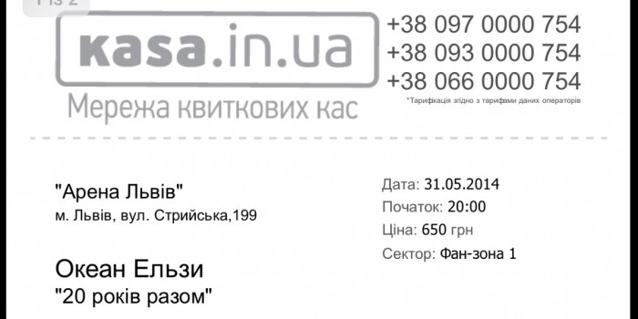 Так покупай и на 24-ое)) Был на первом концерте в поддержку "Dolce Vita" во Львове, еще на старенькой "Украине", поэтому знаю что такое концерт ОЭ у рідному місті )) Поэтому так стремился попасть). Хотя в Киеве тоже будет особенный концерт. З.ы. Спрячь штрих-код билета, а то регуляры арбитража какие-нить еще своруют.