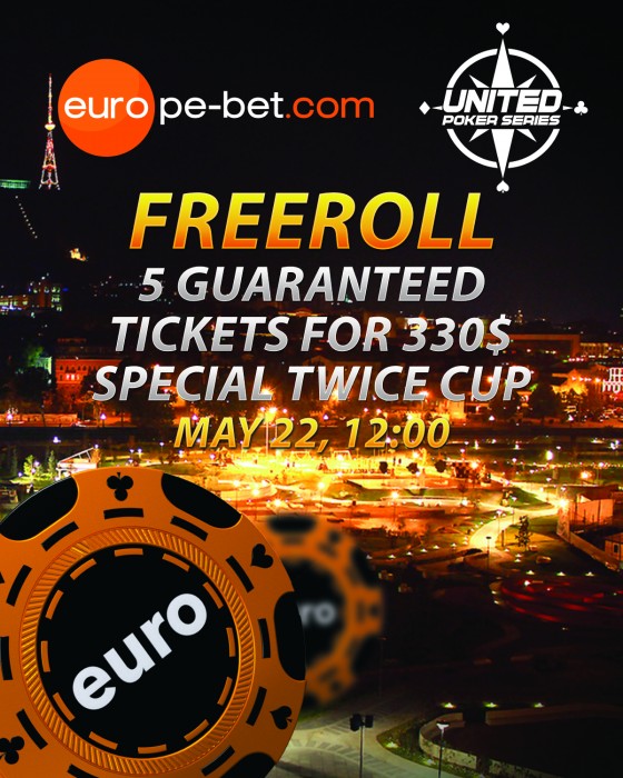 Для игроков Europe-Bet.com, а также для игроков, которые зарегистрируются на Europe-Bet.com во время серий будет аналогичный фрирол 22-ого мая в 12:00 в покер руме Europe-bet. Фрирол гарантирует 5 мест на турнир $330 Special Twice Cup - LotosPoker Satellite to Special Twice Cup!, который проведется в тот же день в 18:00.