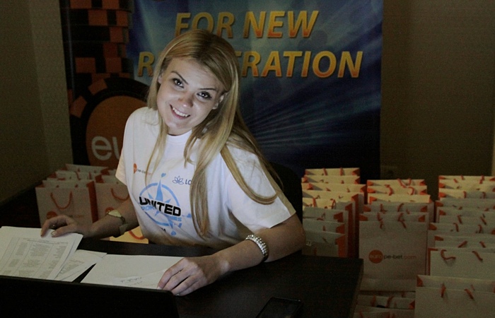 Кроме того, у стойки регистрации неожиданно обнаружилось, что я не один! Рядом оказалась внушительная делегация из "Крещатика" - Александр Филинский, шестеро дилеров (этим девицам-красавицам я посвятил уже ни один опус), а также пара игроков, пробившихся на UPS через сателлиты.