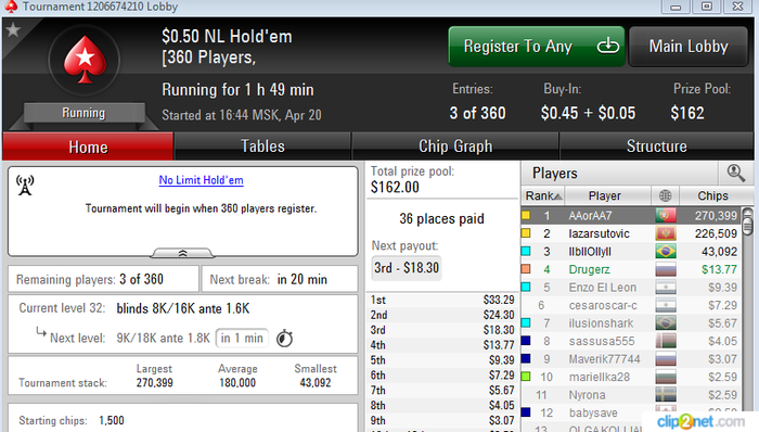 Poker Stars, $0.45 Buy-in (2,500/5,000 blinds, 500 ante) No Limit Hold'em Tournament, 4 Players