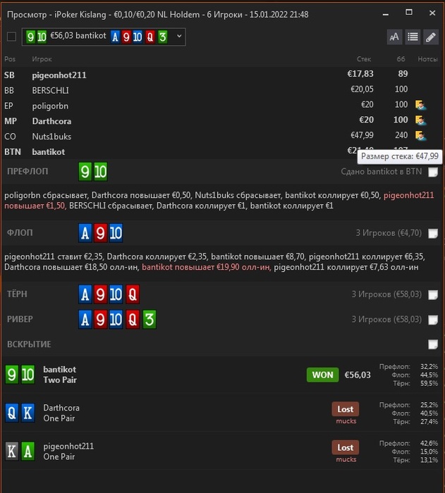 С криком "Тобi пизда!" Херли зарядил 2,7bb c EP.
