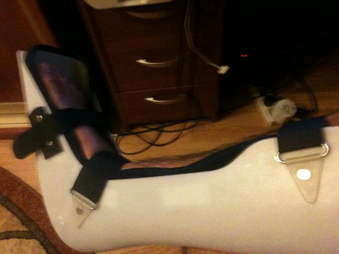 Сегодня я передвигался по квартире в кресле, на котором я сижу за компьютером. Ездили по врачам, в принципе, ничего страшного, растяжение\надрыв связок, перелома лодыжки слава богу нет. Но ходить я все равно не могу и прописали такую лангетку, а также двухнедельный покой.