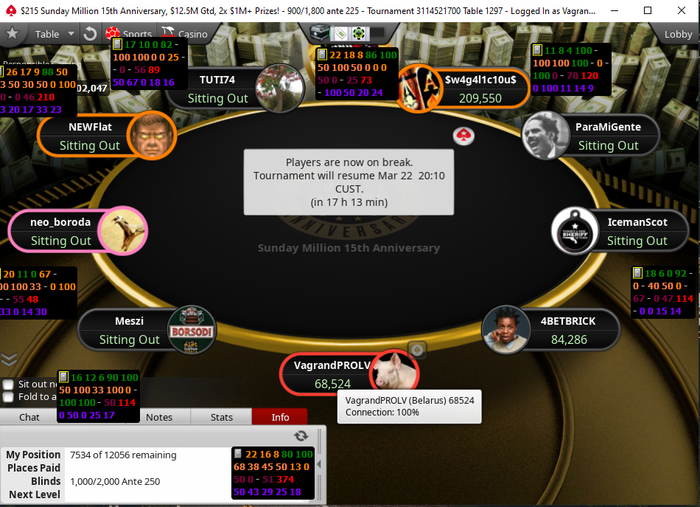 Ну что же? Проиграл Васе дуэль на Party Poker, у меня по итогу получилось -55 у.е за 3+ часа игры в зуме НЛ50, против -29 у.е. Для мттшников я считаю нормальный результат) Если бы втащил коин в самом конце то еще и выйграл бы) Но денег заработал все равно, стримеру ведь не всегда нужно катать в +, что бы его получить))) Наказанием для меня было спеть две песни на выбор чата, но если говорить честно, то это стало наказанием для ушей чатика и моих соседей. Вам бы я это слушать категорически не советовал! Так же хочу сообщить что завтра у нас плотный стрим, грузить дипы буду минимум 5 часов, а скорее всего больше, так что стрим будет наверное 10+ часов. Из гвоздей программы лучшая 210 по составу, а конкретно Beat The Pros на GG ПокерОК, билдер по 215 и несколько 109-к. Пора бы уже занести что нибудь солидное! Всех кому интересно, жду на канале https://www.twitch.tv/drholdem !