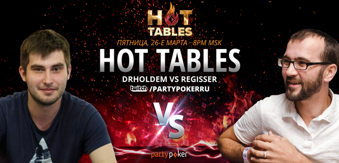 Всем привет ребята) Сегодня у нас будет не совсем обычный стрим. Будем соревноваться с Васей Regisser в том кто из нас наименее плохо играет кеш) Играть будем в руме Party Poker, лимит НЛ 50, все это в рамках нового челенджа для стримеров Hot Tables Challenge. Победит тот кто меньше зальет, ну или чем ГСЧ не шутит больше выйграет) Начинаем в 19.00 или раньше на моем канале https://www.twitch.tv/drholdem, а в 20.00 с помощью рейда плавно перетекаем на канал Party Poker https://www.twitch.tv/partypokerru . Так что всех кому интересно жду) Ну а в субботу, вск и понедельник продолжим наш многострадальный марафон!